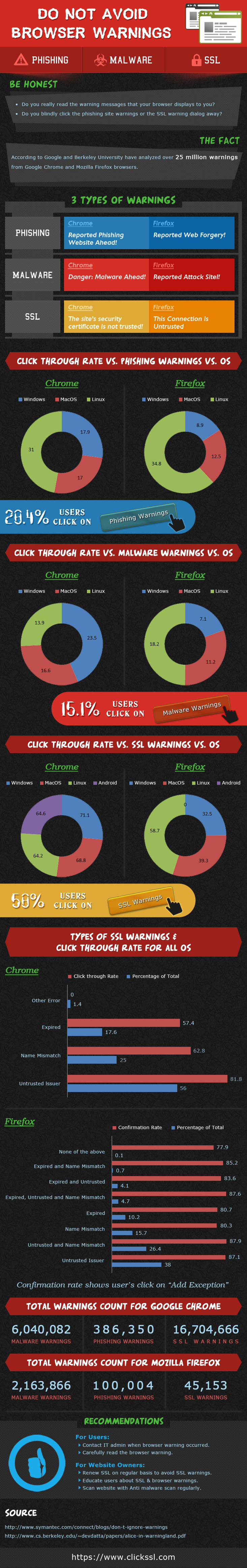 Google and Berkeley University have analyzed over 25 million warning impressions from Google Chrome and Mozilla Firefox browsers in the year 2013.