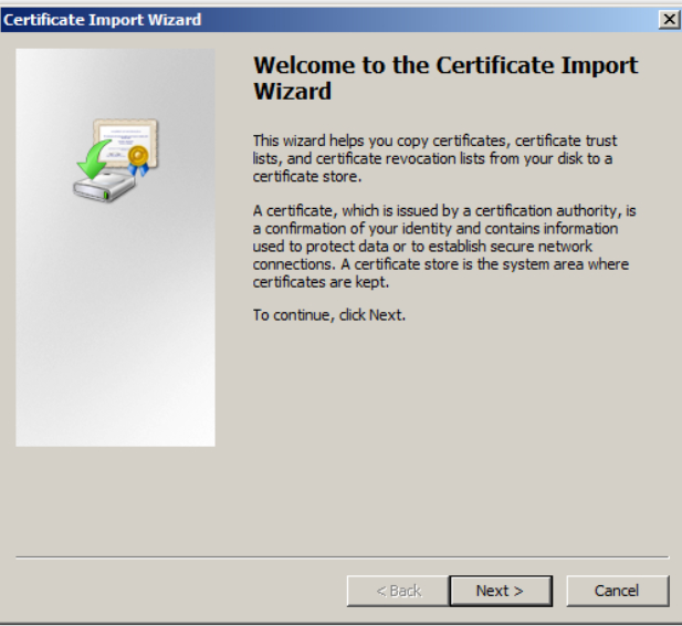 Then follow the steps 10-13 to complete the Certificate Import Wizard for a root certificate: